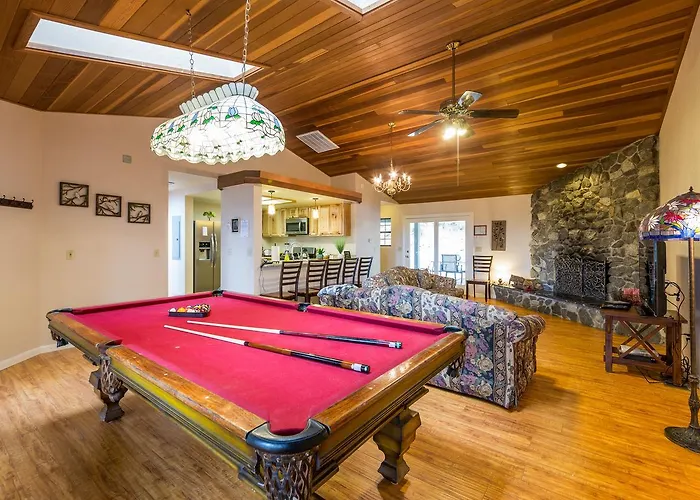Inside Yosemite Sierra BlossomヴィラはHappy Isles Bridgesに隣接して、12人の顧客を収容します。 敷地内には1のバスルーム、3のベッドルームと台所があります。